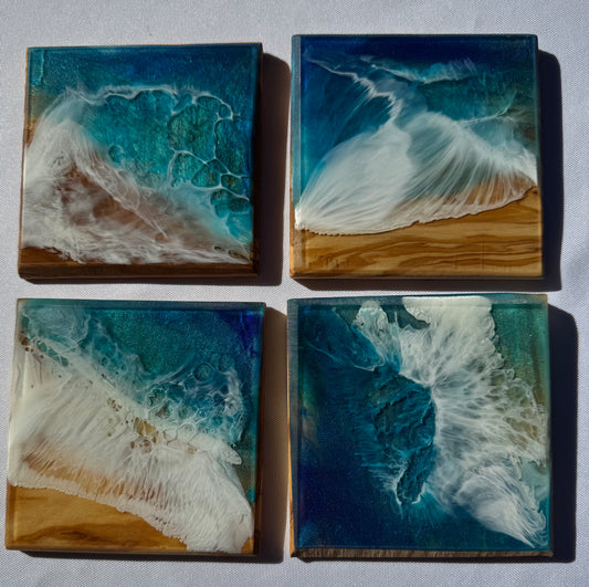 Coaster: Olivewood Square w/ Pacific Blue Wave (4 Count)