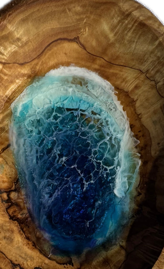 Rest: Olivewood Spoon Rest w/ Pacific Blue Wave